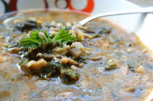 Реших да се възползвам от ценните качества на копривената супа, но да й прибавя и нещо друго. Какво обаче... не ми хрумваше. Е, казах си, ще я направя явно по стария начин. Сложих да заври вода, за да попаря копривата и в последния миг установих, че имам и 3 гъбки от предишния ден, както и пакет елда, който купих отдавна, но така и не ползвах.