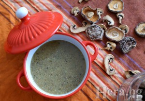 Накисваме гъбите шийтаке в топла вода за около 30 минути. Ако сме решили да използваме сухи печурки може да накиснем и тях. Аз имах малко останали, които съм сушила, така че ги добавих също в супата.