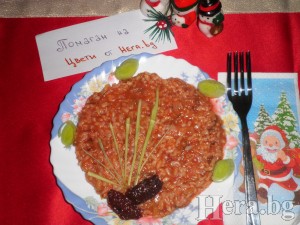 Разбъркваме често да не загори и внимаваме накрая да стане достатъчно сосче, защото оризът си поема и може да остане сухо.