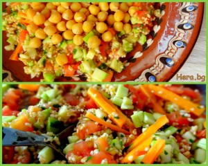 Лятна салата с нахут, булгур и сезонни зеленчуци