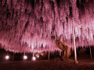 Огромна уистерия расте в парка на гр. Ашикага, префектура Точики, Япония. Дървото, по-скоро - храст, е засято през далечната 1870 година и това го прави на 144 години. Огромната уистерия расте на площ от 1990 кв. м. Клоните на дървото са изключително тежки и то е подкрепено от стоманена решетка, стояща на многобройни пилони, само и само да могат почитателите на изящните цветове да им се насладят под короната на тази красота.