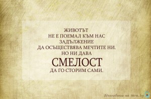 Животът не е поемал към нас задължение да осъществява мечтите ни. Но ни дава смелост да го сторим сами