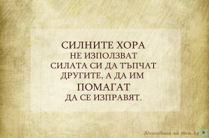 Силните хора не използват силата си да тъпчат другите, а да им помагат да се изправят.