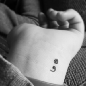 "Проектът точка и запетая" (Project Semicolon) с една голяма кауза - справяне с депресията, самонараняването, самоубийствените наклонности и преодоляването на последиците от опит за самоубийство. В същото време хора, загубили роднините си - братя и сестри, родители, деца, които са успели в отчаянието и са отнели живота си, също си татуират точка и запетайката като начин да се справят, да обърнат внимание и да вдъхновят другите.