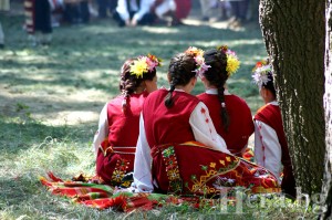 "При тия думи хайдутите, които не снемаха очи от алтъните на шията й, се спуснаха към нея и отдалеч протегнаха жилестите си ръце. Шибил махна с ръка и ги спря. После се обърна, изправи се на целия си ръст и отвисоко измери с очи момата. Какво бяло лице! И тънка в кръста, а полите и широки, като на кукла. И какъв кураж! Очите му заблещяха весело, наду го на смях. Но по-рано от него момата беше се разсмяла с глас. Лицето й светна, стана по-хубава и сега можеше да се види, че очите и са сини и зъбите бели. Шибил я гледаше учуден: какъв ще е тоя дявол?"