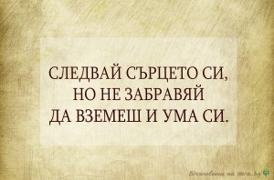 Следвай сърцето си, но не забравяй да вземеш и ума си.