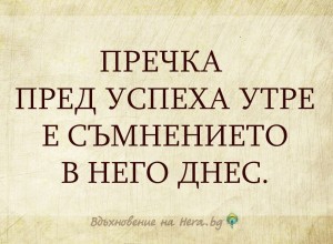 Пречка пред успеха утре е съмнението в него днес