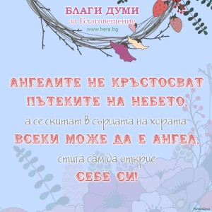“Ангелите не кръстосват пътеките на небето, а се скитат в сърцата на хората, всеки може да е ангел стига сам да открие себе си.”