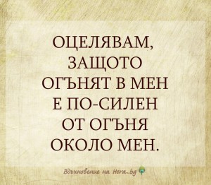 Оцелявам, защото огънят в мен е по-силен от огъня около мен