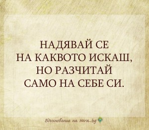 Надявай се на каквото искаш, но разчитай само на себе си.