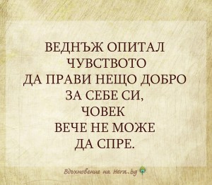 Веднъж опитал чувството да прави нещо добро за себе си, човек вече не може да спре