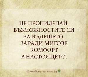 Не пропилявай възможностите си за бъдещето заради мигове комфорт в настоящето.