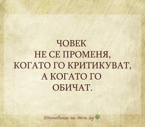 Човек не се променя, когато го критикуват, а когато го обичат.