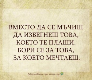 Вместо да се мъчиш да избегнеш това, което те плаши, бори се за това, за което мечтаеш.