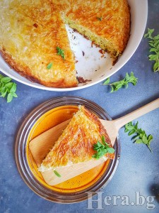 Обръщана баница с праз, тиквички, овче сирене и пресен джоджен