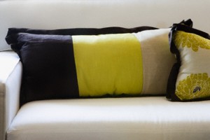 едно важно правило: колкото по ярки са мебелите и стените, толкова по семпли трябва да бъдат цветовете на възглавничките и обратното.